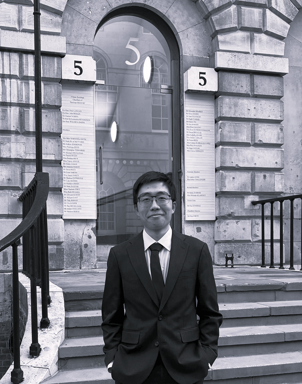 He has gained broad exposure to the legal profession through mini‑pupillages at 33 Bedford Row in London and Parkside Chambers in Hong Kong, as well as insight schemes with leading City firms including Slaughter and May.
